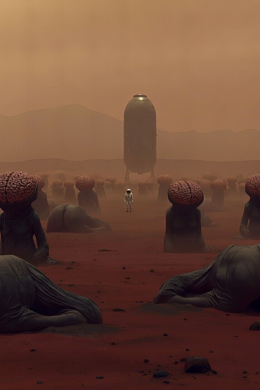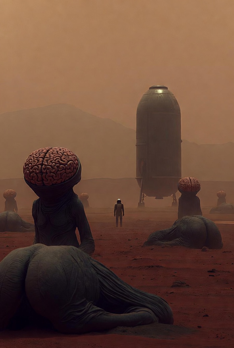 لقيت حوليا كائنات كتير عجيبة والاعجب ان المخلوقات دى شكل الادمغة زاى الطيز ومن الخضة نسيت خالص ان الخوذة مقلوعة ولسه عايش وبتنفس ا لله فى ايه بضبط يمكن عشان انا جوه المكان الغريب ده اللى يشبه الصوبة بتاعت الزراعة انا مش عارف انطق انا متخيل حد هيدينى ضربة بالدماغ اللى شبه الطيز دى وهيقضى عليا ومرة وحدة لقيت حد تحسه البيج فضائى بتاعهم زاى البيج رامى كده عارف تشبيه مش يضحك ماتضحكش سبنى اكمل المهم بصوت شبه صوت الراجل بتاع فيلم كبارية اللى كان اسمه فرعون قال تكلم ايها الفشرى قلتله حضرتك اسمها بشرى ولا عشان مريخى وكده ماضحكش الصراحة وفردة طيزه اليمين طلعت فوق وقالى لاتمزح معى انت لاتعرف غضب الملك طيوزة ايوان زاى ماانتو سمعين كده طبعا هو قال الاسم ده وانا جالى انفجار مريخى من الضحك وهو كل اللى طالع عليه اصمت يا احمق ولا قتلتك وانا مش قادر